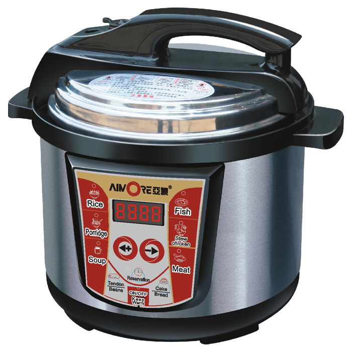 1) Fashionable stream-line designed. 2) Complete sealing structure, keeping up the original flavor. 3) Cooking rice, porridge, soup and meat, fish, bean, slow cooking and stewing food 4) Fully sealed cooking, it can conserve the food' s nutrition and tasting 5) The pressure-limiting valve automatically reduces pressure and safety. 6) Multiple protection devices, high efficiency and energy saving. 7) Flexible timing for presetting cooking time,automatic heat retention. 8) Non-stick and super thick stainless inner pot, easy to clean and cooking much faster.